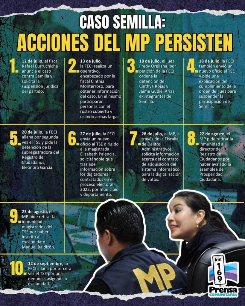 Equipo jurídico de Movimiento Semilla presentó ante la Corte Suprema de Justicia (CSJ) dos solicitudes de antejuicio, contra la jefa del Ministerio Público, Consuelo Porras y el juez Fredy Orellana. Asimismo dos denuncias; contra Rafael Curruchiche y la fiscal Cinthia Monterroso.