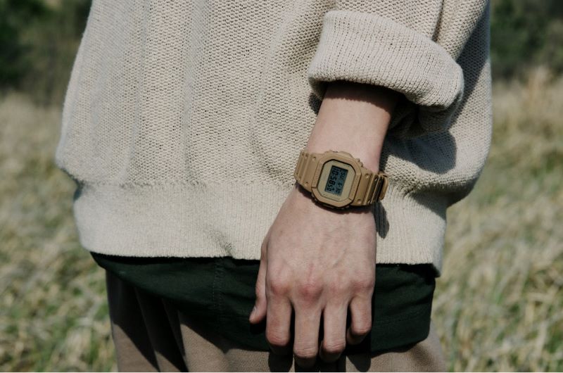- Experimenta con capas y proporciones: Juega con capas y proporciones para lograr un look moderno y relajado. Un reloj en tonos tierra puede ser el elemento clave para equilibrar varias prendas. Un ejemplo podría ser con una chaqueta de campo en tono tierra, pantalones cargo color verde militar y unas botas resistentes a todo (como tu G-SHOCK); este estilo combina practicidad con moda, preparándote para cualquier aventura fuera de la ciudad luciendo increíble.
