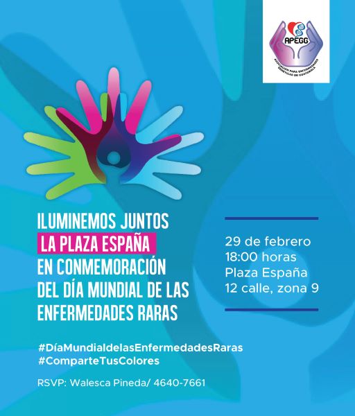Guatemala, 27 de febrero de 2024.- En el marco del Día Mundial de las Enfermedades Raras, la Asociación para Enfermedades Genéticas de Guatemala (APEGG) llevó a cabo la iluminación de la Plaza España el jueves 29 de febrero a partir de las 18:30 horas, con el fin de sensibilizar a la sociedad guatemalteca sobre las dificultades que enfrentan quienes viven con enfermedades raras y sus familias.