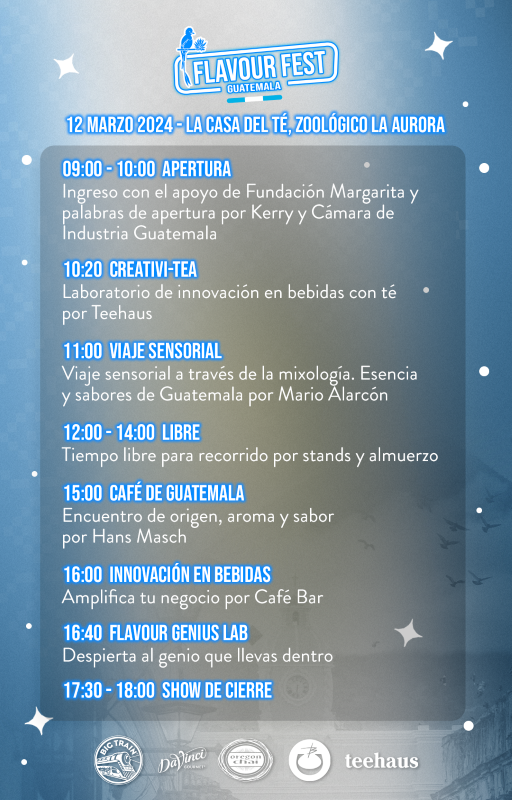 Guatemala, 04 de febrero de 2024. El 12 de marzo, la Casa del Té del Zoológico La Aurora será el punto de reunión para los amantes de la innovación y la gastronomía, ya que el Flavour Fest abrirá sus puertas para disfrutar de exhibición de productos y bebidas, conferencias, clases en vivo, concursos y show de cierre.