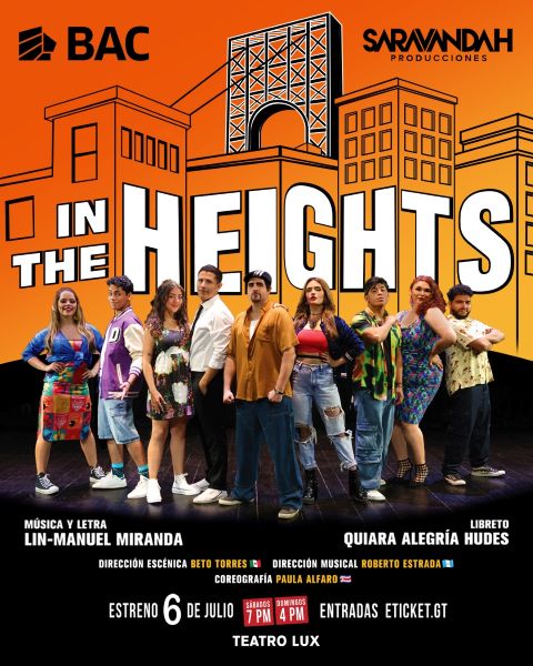 Guatemala, 12 de junio de 2024. En colaboración con Saravandah Producciones, BAC se enorgullece en anunciar la llegada de un evento cultural que promete impresionar a todos los guatemaltecos. Creado por Lin-Manuel Miranda, actor y compositor reconocido por sus significativas contribuciones al teatro musical, “In The Heights” es un musical vibrante y emotivo que se presenta por primera vez en Guatemala y nos transporta al dinámico vecindario de Washington Heights en Nueva York.
